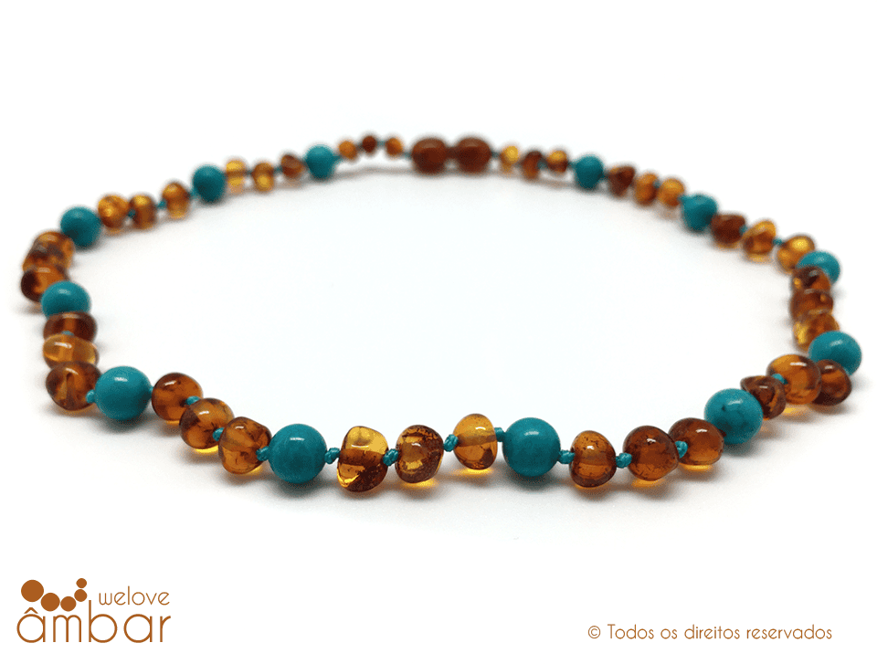 21 de Outubro, 2022Colar de âmbar cognac com turquesa – 60cm
