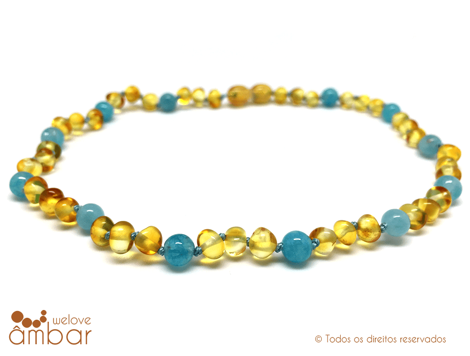 Colar de âmbar mel com aquamarine – 45cm